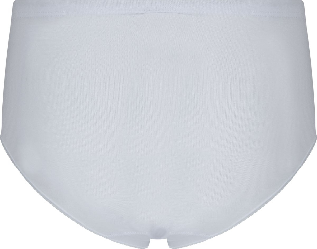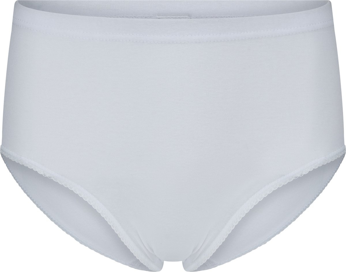Elastische dames heupslip, gemaakt van een fijnrib, zonder zijnaden. De pijpen zijn afgezet met een elastisch kantje en de taille is omgezoomd met een tunnelelastiek. De binnenkant van het kruis is gemaakt van badstof, dat zorgt voor extra draagcomfort.