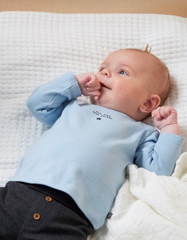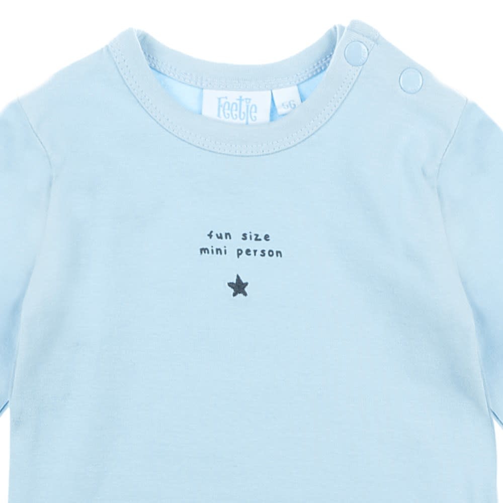 FEETJE Mini Person longsleeve lichtblauw met tekst Fun size mini person. Stel je eigen combinatie samen uit deze mooie newborn serie.