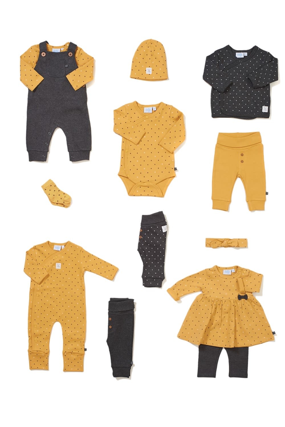 Feetje Babykleding . Deze serie Star is goed te combineren met de serie Mini Person in licht blauw en antraciet en Dots in roze en Antraciet. Never out of stock